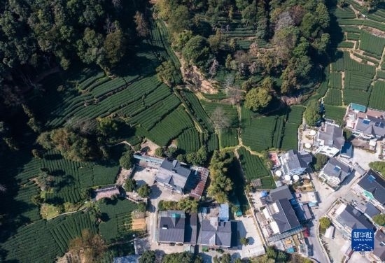 3月13日拍攝的龍井村的茶山(無(wú)人機(jī)照片)。