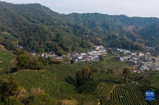 3月13日,空中俯瞰梅家塢村的西湖龍井茶地(無(wú)人機(jī)照片)。