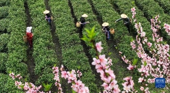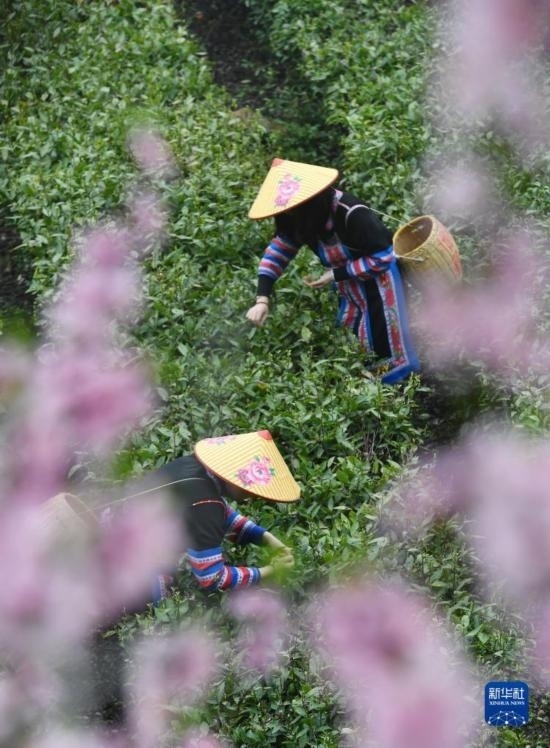 3月20日,在湖南衡陽常寧市塔山瑤族鄉(xiāng),茶農(nóng)在茶園采茶。