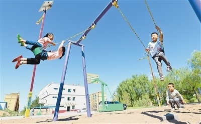 去年以來,甘肅省張掖市民樂縣把生態(tài)及地質災害避險搬遷與城鎮(zhèn)化建設相結合,推動城鄉(xiāng)融合發(fā)展。圖為搬遷到民樂縣樂民新城的孩子們在小區(qū)內玩耍。王 將攝(人民圖片)