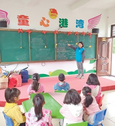 有著十幾年幼兒教育經(jīng)驗(yàn)的劉蓮娟,就這樣被村里推薦為童伴媽媽。同時(shí),她還是螺溪鎮(zhèn)一家幼兒園的老師,住在鎮(zhèn)里。每到周末,她便騎上電動(dòng)自行車(chē),往返于村鎮(zhèn)之間,每周在“童心港灣”開(kāi)展10多個(gè)小時(shí)的親情連線、閱讀陪伴、文體項(xiàng)目、家訪校訪等活動(dòng)。