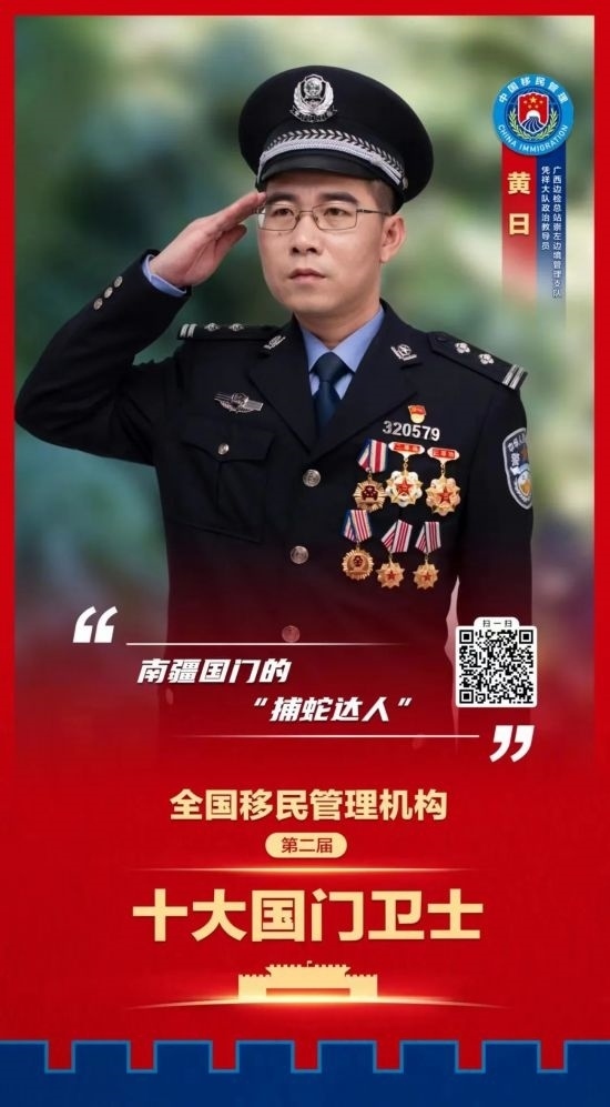 廣西出入境邊防檢查總站崇左邊境管理支隊(duì)?wèi){祥邊境管理大隊(duì)政治教導(dǎo)員、一級(jí)警長(zhǎng) 黃日