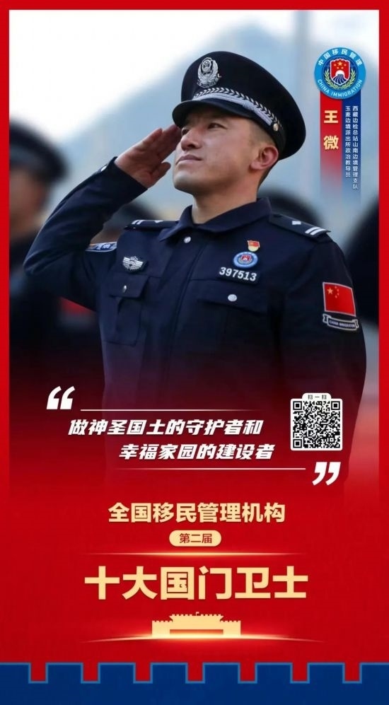 國(guó)家移民管理機(jī)構(gòu)十大國(guó)門衛(wèi)士每3年評(píng)選表彰一次,獲評(píng)人員是全國(guó)移民管理警察隊(duì)伍中政治立場(chǎng)堅(jiān)定、能力素質(zhì)過(guò)硬、工作實(shí)績(jī)卓著、紀(jì)律作風(fēng)優(yōu)良、模范作用顯著的先進(jìn)典型,是新時(shí)代移民管理警察的杰出代表。他們忠誠(chéng)履職、無(wú)私奉獻(xiàn),在捍衛(wèi)國(guó)家政治安全、維護(hù)國(guó)門邊境穩(wěn)定、促進(jìn)經(jīng)濟(jì)社會(huì)發(fā)展過(guò)程中作出了突出貢獻(xiàn),生動(dòng)反映了國(guó)家移民管理體制改革的豐碩成果,展示了移民管理警察良好精神風(fēng)貌,展現(xiàn)了移民管理機(jī)構(gòu)新形象、新作為。