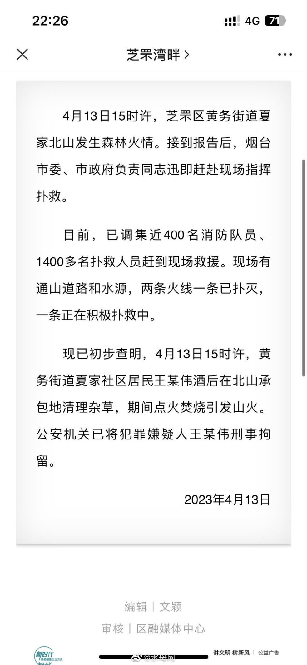 ·官方通報煙臺山火:系居民焚燒雜草引發(fā),犯罪嫌疑人已被刑事拘留。