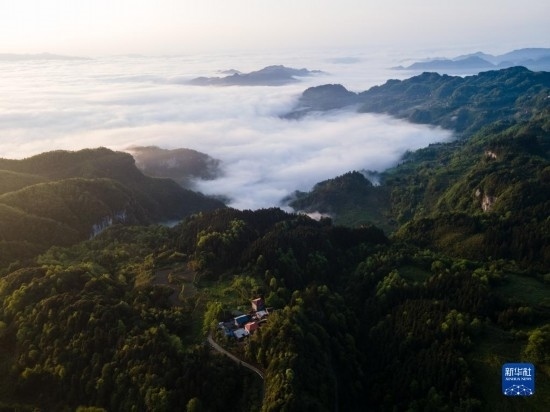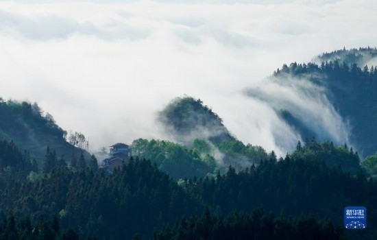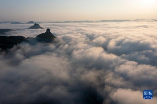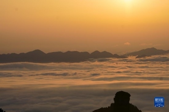 當(dāng)日,位于重慶市南川區(qū)的世界自然遺產(chǎn)地金佛山雨后放晴,山間升騰起的水汽匯聚成云海在山巒之間流淌,美不勝收。