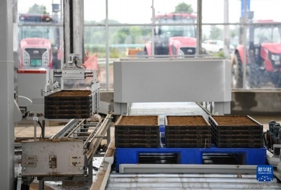 位于成都平原的四川省眉山市彭山區(qū),近年來加快建設數(shù)智水稻示范基地,通過引進或定制循環(huán)式智能育秧機、智能水稻育秧播種流水線、秧盤智能傳輸帶等設備,提升春耕科技含量,提高生產(chǎn)效率。