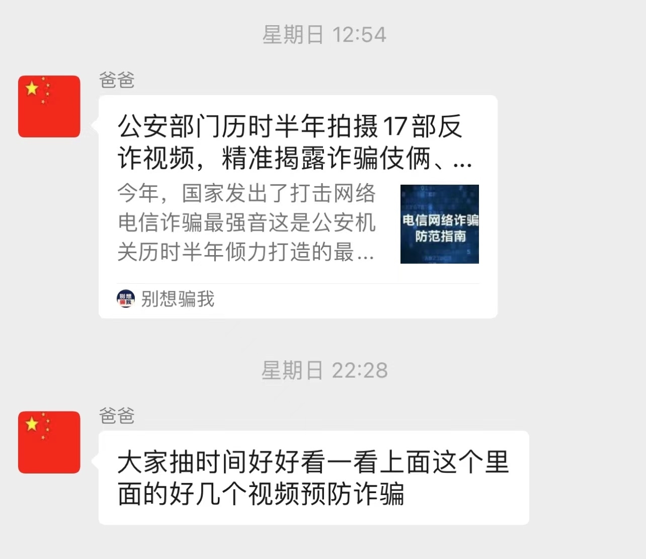 ▲上周日,張爸爸在群里分享了一則防詐騙推文卻一直沒人回復(fù)