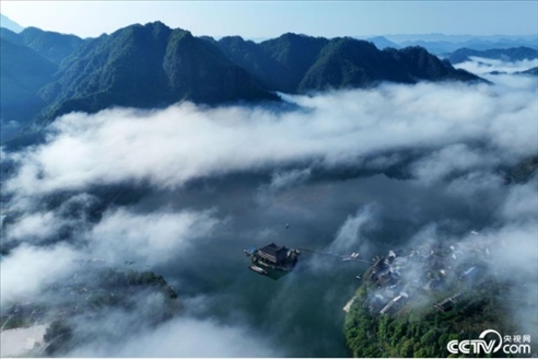 2023年5月18日,重慶酉陽縣酉水河鎮(zhèn)河灣山寨,晨霧下的酉水河風光。