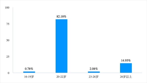 同樣,由于需要一天內(nèi)打卡多個甚至十幾個景點、為了節(jié)省成本而大量采取步行和騎行的“特種兵旅游”需要大量體力,因此集中在年輕人群,調(diào)查結(jié)果顯示有82.18%受訪者年齡段集中在20~22歲,可見大學(xué)生人群是對“特種兵旅游”感興趣和參與的主力。