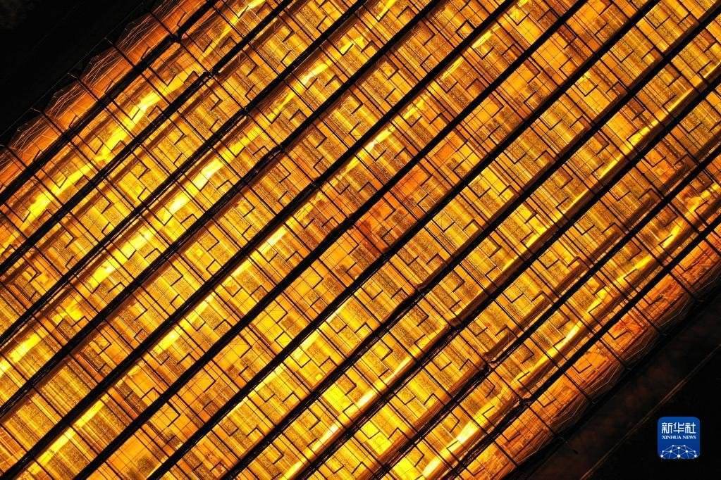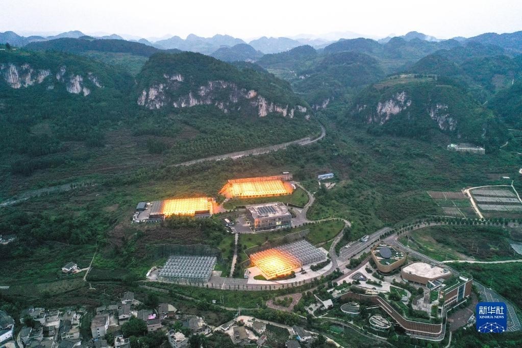 這是5月23日拍攝的貴陽市開陽縣南江蔬菜良種繁育中心育苗大棚夜間補(bǔ)光場景(無人機(jī)照片)。補(bǔ)光更有利于種苗生長,縮短育苗周期。