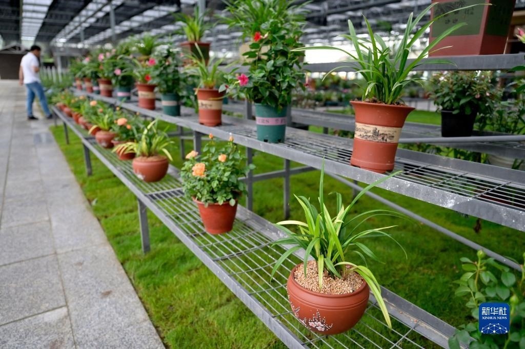 6月8日在浙江省紹興市柯橋區(qū)漓渚鎮(zhèn)棠棣村拍攝的蘭花數(shù)字工廠一景。新華社記者 才揚(yáng) 攝