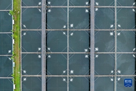 6月7日在中國(guó)清江(宜都)鱘魚谷養(yǎng)殖車間拍攝的鱘魚。