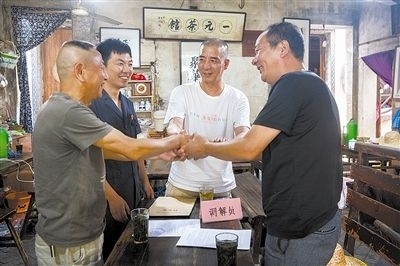 考慮鄉(xiāng)里鄉(xiāng)親,雙方都不愿對(duì)簿公堂,但又涉及合同履行中是否存在瑕疵交付的法律問題,老邵迅速將情況反饋給共享法庭。為盡快化解矛盾,當(dāng)天下午,法官趕到現(xiàn)場(chǎng)指導(dǎo)人民調(diào)解員,并與茶館的鄉(xiāng)賢一同開展調(diào)解。經(jīng)過法官的普法、調(diào)解員的說理,雙方厘清各自責(zé)任之后,達(dá)成調(diào)解協(xié)議。在茶館輕松和諧的氛圍里,兩個(gè)老朋友解開心結(jié),握手言和。