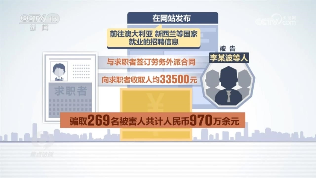 2023年5月,北京市房山區(qū)法院也判決了一起出國(guó)勞務(wù)詐騙案,被告李某波因詐騙罪一審判決13年6個(gè)月有期徒刑。判決書(shū)顯示:被告李某波等人冒用北京一家勞務(wù)派遣有限公司名義開(kāi)展業(yè)務(wù),在網(wǎng)站發(fā)布前往澳大利亞、新西蘭等國(guó)家就業(yè)的招聘信息,與求職者簽訂勞務(wù)外派合同,向求職者收取人均33500元的費(fèi)用,最終騙取269名被害人共計(jì)人民幣970萬(wàn)余元。檢察官還總結(jié)了這類(lèi)詐騙案的幾個(gè)特點(diǎn)。