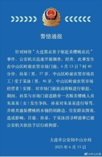 ·大連通報(bào)男子驅(qū)趕賣(mài)櫻桃農(nóng)民:為市場(chǎng)方人員,已被行拘。