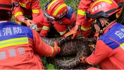 ·莆田一農(nóng)戶家每月少一只羊,家附近發(fā)現(xiàn)巨蟒,消防抓獲時(shí)蟒腹中尚有只小羊。