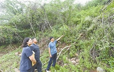 6月20日,安徽省明光市人民法院澗溪人民法庭法官頭頂炎炎烈日,穿越泥濘山道,徒步三公里,登上葛藤窩山,到一起環(huán)境污染責任糾紛案的現(xiàn)場查看樹木受損情況。