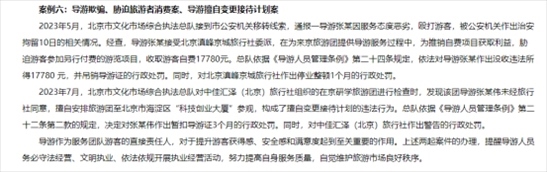 ·北京通報文旅市場行政處罰典型案例,有導(dǎo)游脅迫毆打游客被罰。
