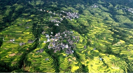 9月10日,無人機(jī)航拍的廣西三江侗族自治縣獨峒鎮(zhèn)的高山梯田秋色正濃,美如畫卷。