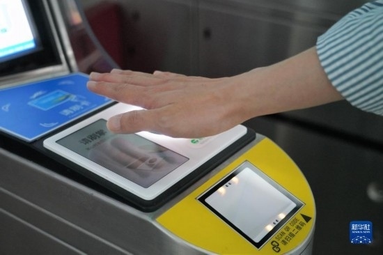 “刷掌”乘地鐵 5月21日,乘客在北京大興機(jī)場(chǎng)線草橋站刷掌過(guò)閘。當(dāng)日,......