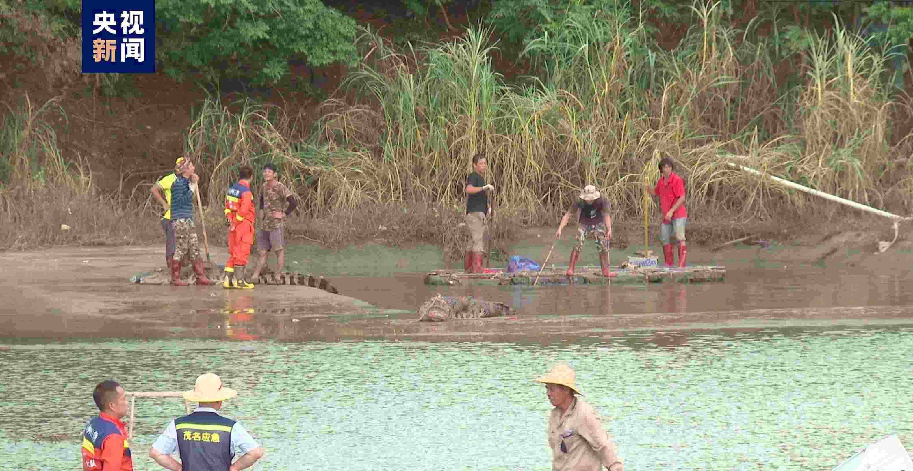 受9日至11日強(qiáng)降雨的影響,廣東茂名市茂南區(qū)北界羅村的一家鱷魚養(yǎng)殖場(chǎng),部分圍墻受洪水沖擊而崩塌,場(chǎng)內(nèi)部分鱷魚游出。事發(fā)后,當(dāng)?shù)剞r(nóng)業(yè)農(nóng)村、應(yīng)急、公安、消防等專業(yè)力量迅速對(duì)出逃鱷魚開(kāi)展搜捕工作,經(jīng)過(guò)4天的搜查,目前已有62條鱷魚被捕獲。