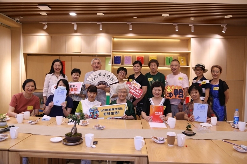她希望能給他們提供彼此支持、交流經(jīng)驗的社交平臺。而她也漸漸發(fā)現(xiàn)最了解家屬需求的是他們自己。為什么不能由家屬自己來決定討論什么呢?于是,2020年,汪達民與顧春玲一拍即合,在延續(xù)國外“記憶咖啡館”理念的基礎上,開創(chuàng)了本土特色的認知癥家屬互助平臺:照護茶館。畢竟,茶館就是熱鬧的、七嘴八舌的,人們來這里消遣娛樂,釋放壓力。在照護茶館里,家屬們既是掌柜也是茶客,分享各種照護信息,這也是認知癥患者照護者們希望得以喘息的方式。