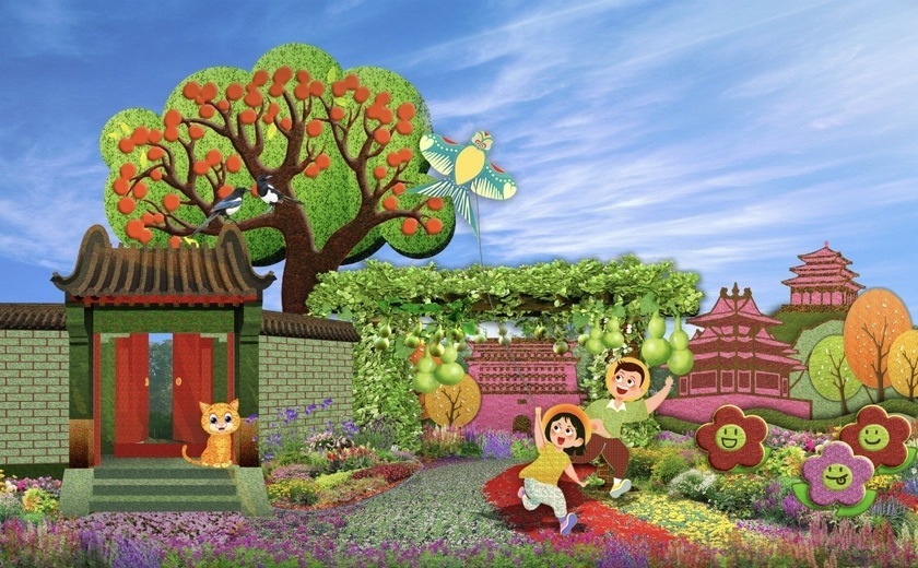 3,東單東南角的“共同富裕”主題花壇頂高達(dá)9.5米,以欣欣向榮的城鄉(xiāng)融合發(fā)展為場(chǎng)景,描繪了中國式現(xiàn)代化全體人民共同富裕的美好藍(lán)圖。