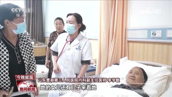 山東曹縣第三人民醫(yī)院內(nèi)科副主任醫(yī)師 李學(xué)敏:問她早晨吃的什么飯,這個(gè)患者往往回答不出來,甚至是說沒有吃飯,其實(shí)她家屬反映她已經(jīng)吃過飯了。她的女兒還有兒子來看她,她就不知道是誰。