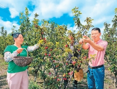 江蘇省宿遷市斯味特萬畝蘋果產業(yè)示范區(qū),園區(qū)職工在采摘蘋果。 楊群、張思遠攝影報道 |