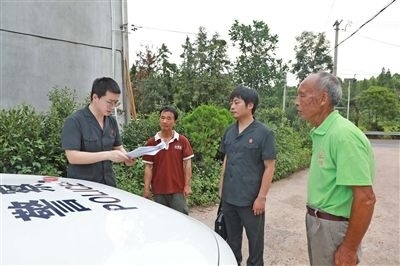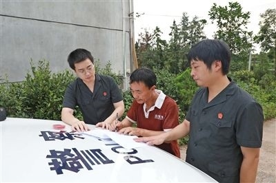 執(zhí)行干警與申請執(zhí)行人確認(rèn)界址。