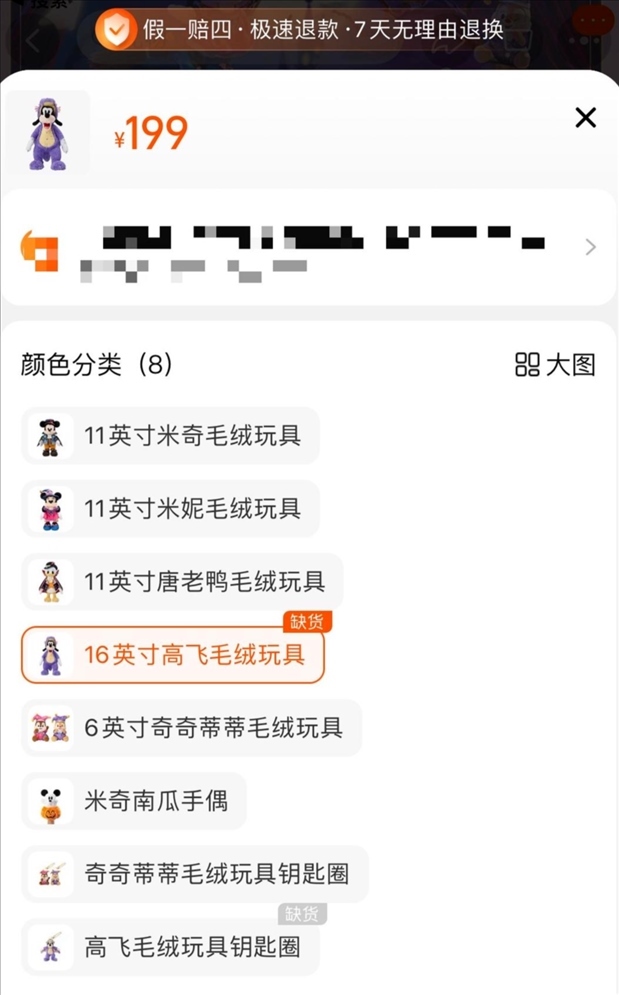 9月27日中午11點(diǎn)多,紅星新聞記者在上海迪士尼樂園官方旗艦店看到,該系列商品同一用戶每天購買總數(shù)量至多2件,16英寸高飛毛絨玩具、高飛毛絨玩具鑰匙圈均顯示“缺貨”。記者咨詢客服是否還會補(bǔ)貨,截至發(fā)稿時未收到回復(fù)。