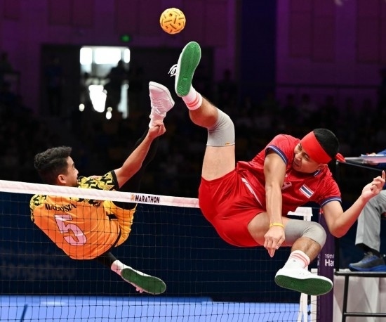 杭州亞運(yùn)會(huì)藤球男子單組團(tuán)體決賽現(xiàn)場。新華社記者 陳鐘昊 攝
