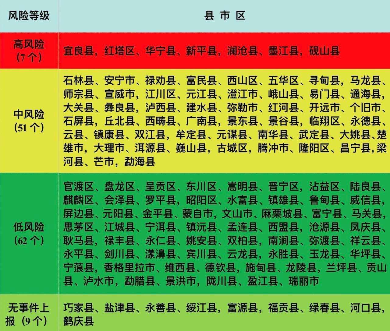 為切實(shí)維護(hù)廣大人民群眾身體健康和生命健康,有效減少有毒野生菌中毒事件發(fā)生,云南省依據(jù)2020—2022年全省野生菌中毒數(shù)據(jù)并結(jié)合各地有毒野生菌種類(重點(diǎn)關(guān)注中毒致死的野生菌亞稀褶紅菇,劇毒鵝膏類等),將云南所轄129個(gè)縣(市、區(qū))野生菌中毒風(fēng)險(xiǎn)分為高、中、低三個(gè)等級(jí),累計(jì)中毒事件起數(shù)≥100起或死亡人數(shù)≥3人的地區(qū)劃定為高風(fēng)險(xiǎn)地區(qū),累計(jì)中毒事件起數(shù)為30—99起或死亡人數(shù)為1—2人的地區(qū)劃定為中風(fēng)險(xiǎn)地區(qū),累計(jì)中毒事件起數(shù)<30起且無死亡的地區(qū)劃定為低風(fēng)險(xiǎn)地區(qū),繪制了《2023年云南省有毒野生菌中毒風(fēng)險(xiǎn)分級(jí)地圖》《2023年云南省有毒野生菌中毒風(fēng)險(xiǎn)分級(jí)表》。