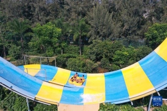 7月9日,游客在浙江省玉環(huán)市漩門灣水上樂園游玩(無(wú)人機(jī)照片)。