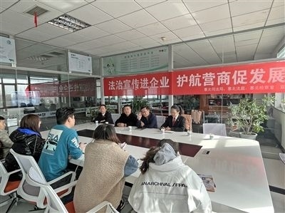 法官開(kāi)展“法治宣傳進(jìn)企業(yè) 護(hù)航營(yíng)商促發(fā)展”活動(dòng)。