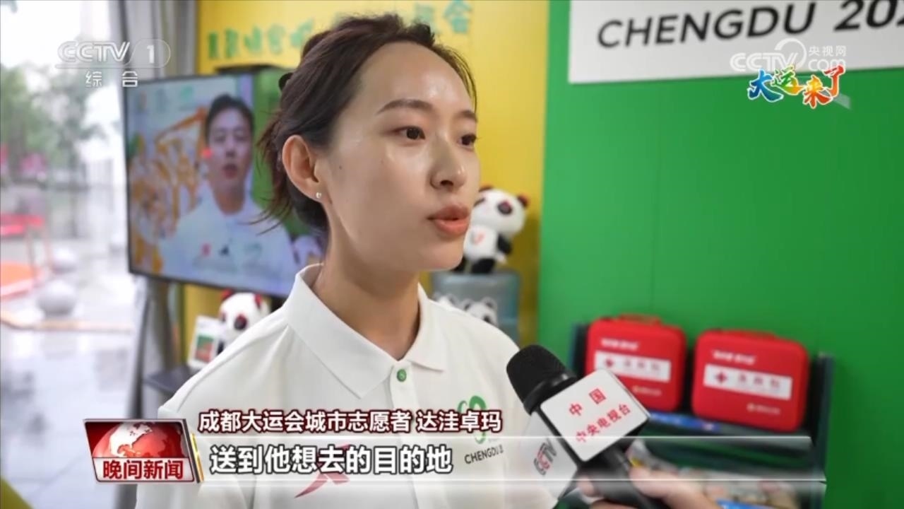 成都大運(yùn)會(huì)城市志愿者 達(dá)洼卓瑪:作為城市的志愿者能夠服務(wù)到周邊一些居民,包括游客,也是感到非常的榮幸和自豪的。?