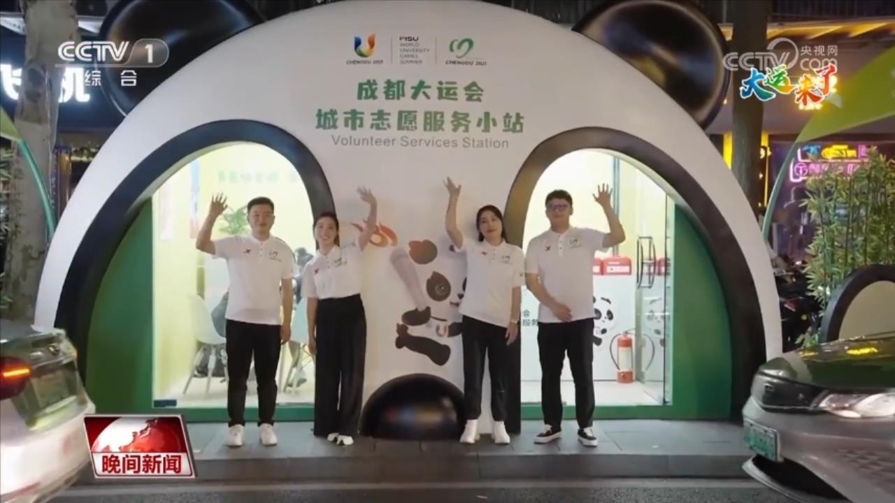 除了這些應(yīng)急需求,小站還有城市推廣的功能。這個(gè)小站內(nèi)就配備有賽事直播顯示屏、文創(chuàng)產(chǎn)品、競賽日程表、應(yīng)急急救包等設(shè)施設(shè)備,營造青春、活力、友好的志愿服務(wù)場景。此外,一些外籍人士也在這個(gè)小站周邊工作生活,他們同樣被大運(yùn)會(huì)的氛圍感染。
