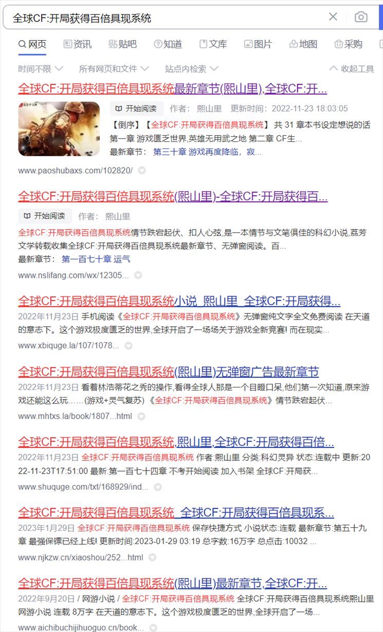記者查詢發(fā)現(xiàn),除了擅自“續(xù)寫”之外,網(wǎng)絡(luò)文學(xué)被盜版網(wǎng)站通過技術(shù)手段“爬取”的現(xiàn)象十分常見。以作品名為關(guān)鍵詞搜索,只有前幾條能導(dǎo)向正版網(wǎng)站,其余都是盜版,原創(chuàng)作者維權(quán)困難。