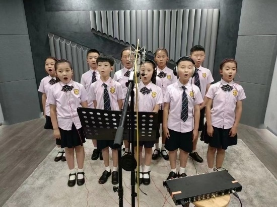 文縣東壩童聲合唱團在央視錄音棚中錄制《大山里的孩子》。