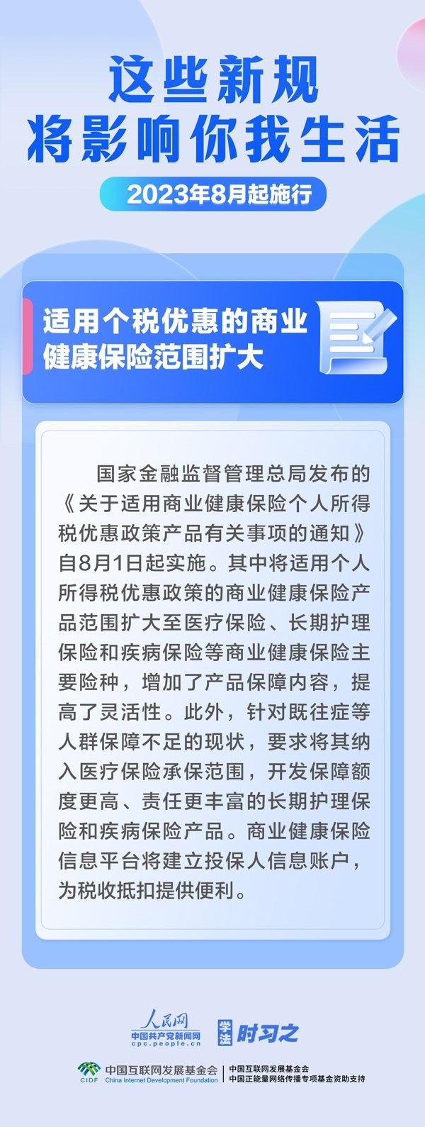 促進生成式人工智能健康發(fā)展;擴大適用個稅優(yōu)惠政策的商業(yè)健康保險產品范圍;明確經營性人力資源服務機構不得向個人收取押金……8月,這些新規(guī)施行,將影響你我生活。