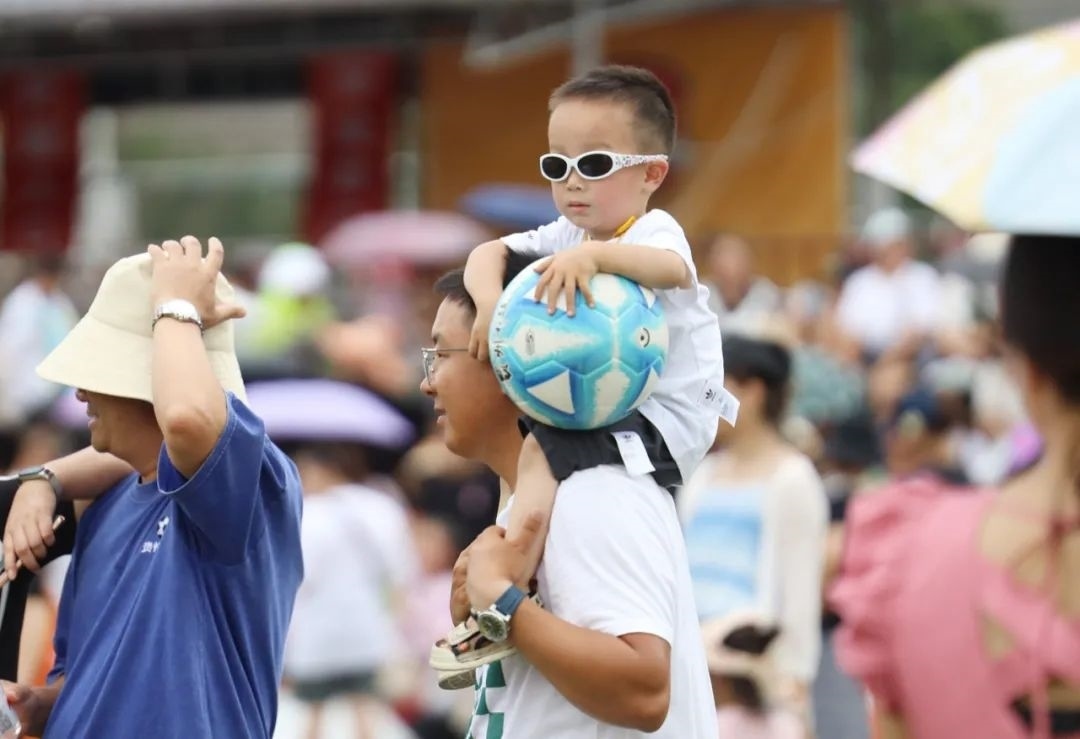 今年八歲的楊博壹就是其中之一。他經(jīng)常到體育場(chǎng)來踢足球,“因?yàn)闊釔厶咦闱?,看了‘村超’比賽后,更喜歡足球了。”