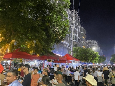 一位賣榕江卷粉、芋頭糕等特色小吃的小吃攤攤主說:“我們從早忙到晚,擺攤到凌晨1點(diǎn)鐘左右,人太多了,一天能賣幾百碗?!?/p>