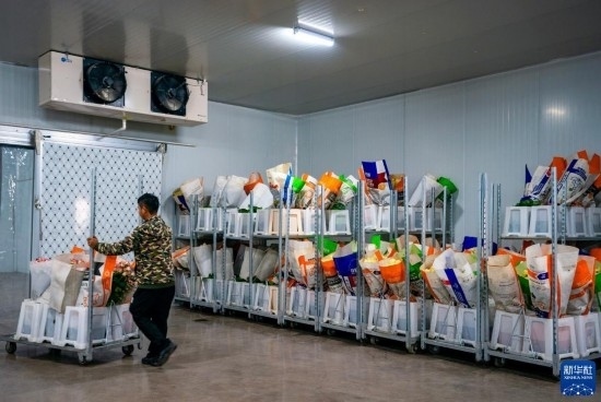 在云天化晉寧花卉產(chǎn)業(yè)現(xiàn)代化示范園內(nèi),一名花農(nóng)將新采摘的鮮花推入冷庫進行預冷處理(7月12日攝)。新華社記者 陳欣波 攝