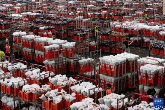 每天,由花農(nóng)采摘的鮮花進入分揀包裝車間,預冷、分級、包裝、入庫冷藏等工作井然有序地開展。經(jīng)過采后處理的鮮花一部分通過園區(qū)自有物流直接向客戶發(fā)貨,一部分則由專門的鮮花運輸車運往昆明國際花卉拍賣交易中心,開啟拍賣流程。