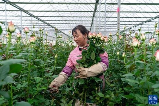 清晨,在云南省昆明市晉寧區(qū)云天化晉寧花卉產(chǎn)業(yè)現(xiàn)代化示范園內(nèi),品類各異的鮮花競相綻放,花農(nóng)們在現(xiàn)代化大棚里忙著采摘、搬運。云天化晉寧花卉產(chǎn)業(yè)現(xiàn)代化示范園是集育苗、智能溫室大棚、水肥一體化、無土綠色栽培、全程數(shù)字化管理系統(tǒng),以及鮮切花采后處理、預冷儲藏等為一體的高標準設施農(nóng)業(yè)產(chǎn)業(yè)園區(qū),年產(chǎn)鮮切花1.6億枝。