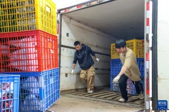 一名花商在昆明國際花卉拍賣交易中心外準備將拍得的鮮花裝車運走(7月13日攝)。新華社記者 陳欣波 攝