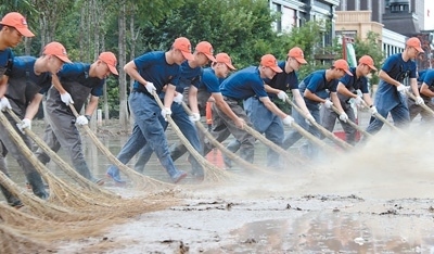 8月11日,黑龍江省哈爾濱森林消防支隊(duì)組織骨干力量組成黨員突擊隊(duì),在尚志市進(jìn)行清淤、排水工作。本報(bào)記者 張藝開(kāi)攝