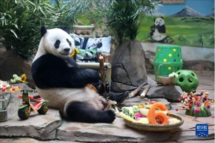8月11日是大熊貓“剛剛”(小名“青城”)的6歲生日,鞍山動物園為它準備了特制的生日大餐,眾多市民游客前來為它慶生。