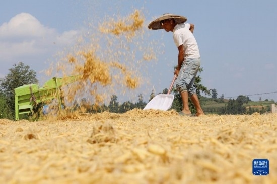 立秋以來(lái),貴州、湖南等地農(nóng)民搶抓晴好天氣,晾曬收獲的作物。