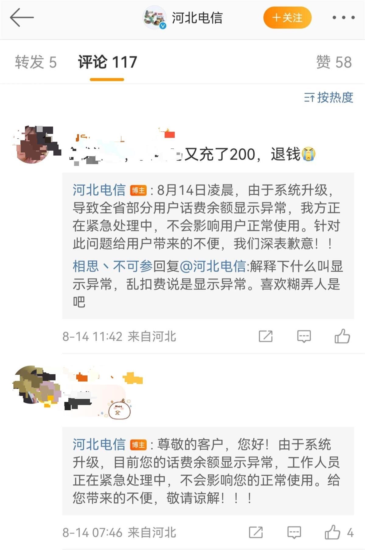 ·河北多名電信用戶稱手機(jī)莫名欠費(fèi),官方:系統(tǒng)升級(jí)導(dǎo)致,不影響通信。